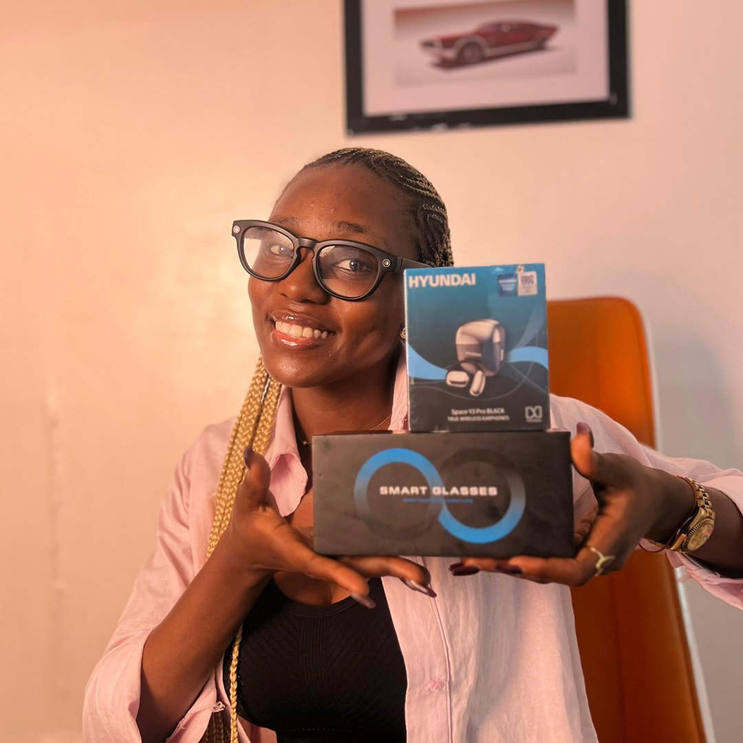 1. The 2025 Model AI Smart glasses with 32gb inbuilt memory, capable of recording videos in HD, Take high quality pictures, recieve and make calls, listen to music and also identify objects by using the embedded AI technology feature.