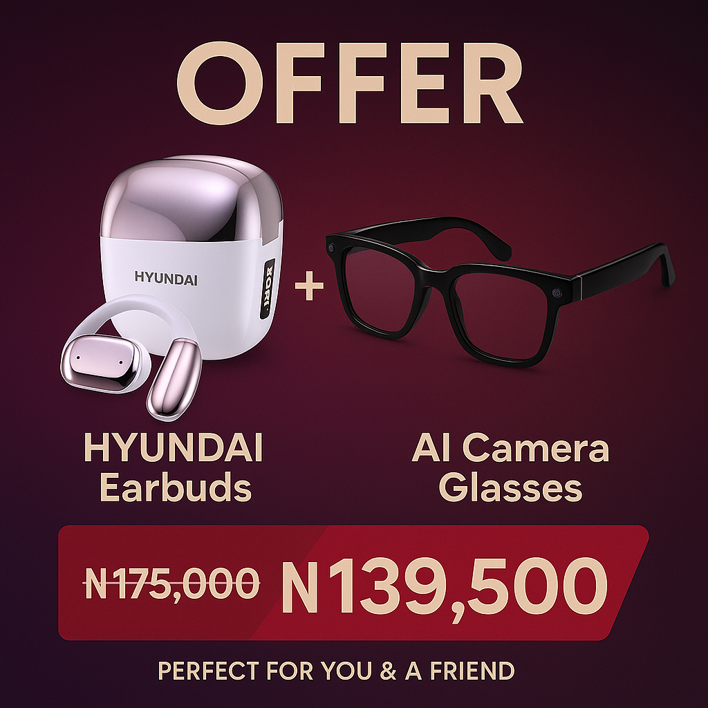 Buy 1 Hyundai Earbuds plus Video camera AI Glasses that records audios, play music, records video and translates foreign music for Just N139,000 Instead of N175,000