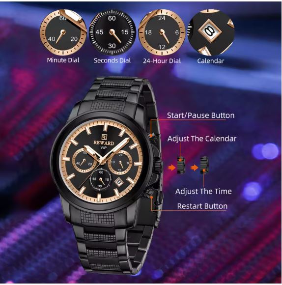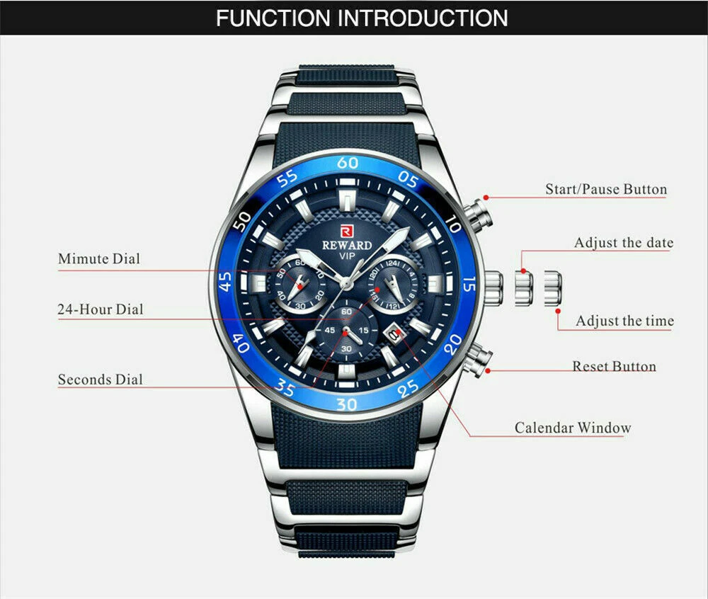 Stainless Strap Chronograph Luminous Waterproof Men's Wristwatches