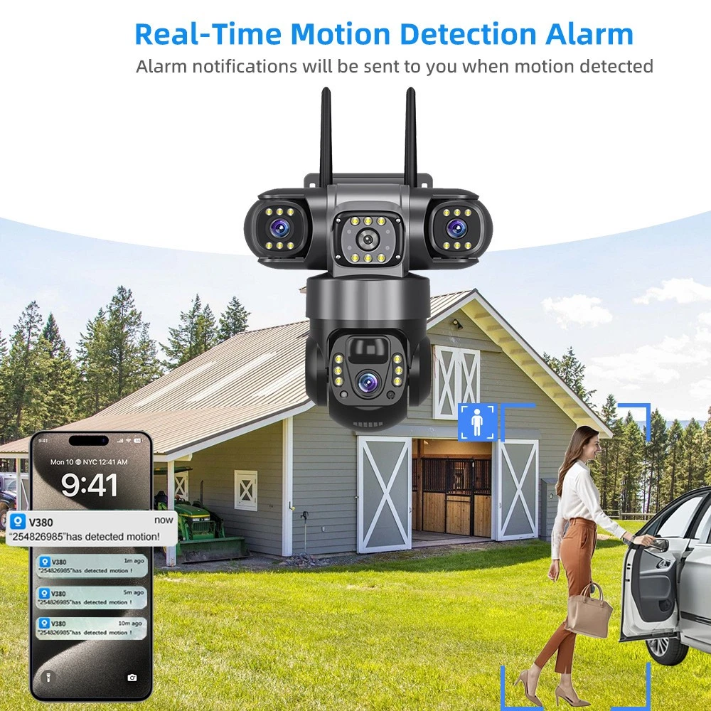 Not all movements require immediate action. With a 3 lens PTZ security camera, you get smarter motion detection. The camera uses intelligent algorithms to differentiate between normal movement (like wind or animals) and suspicious activity (such as a person entering your property). This helps reduce unnecessary alerts, ensuring that only real threats are detected. Advanced features such as human tracking ensure that the camera can follow a person if they move within its field of view, which is especially useful for larger properties. The camera can track individuals over a wide area, allowing you to capture every important detail, whether it’s a single person or a group of people.